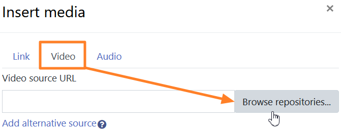 - Next, Click the Video tab at the top, then click 'browse repositories...' for our recording file.