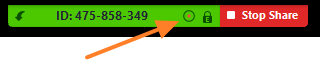 - Recording in progress is indicated by a small red dot with a black cloud outline around it (Cloud), located next to your meeting ID and below the Control Bar.