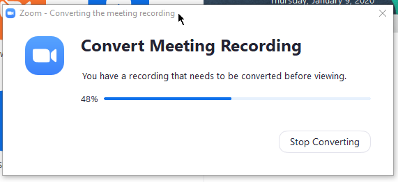 - Computer recordings will process immediately after the meeting ends. The processing screen can be seen in the first image on the right.